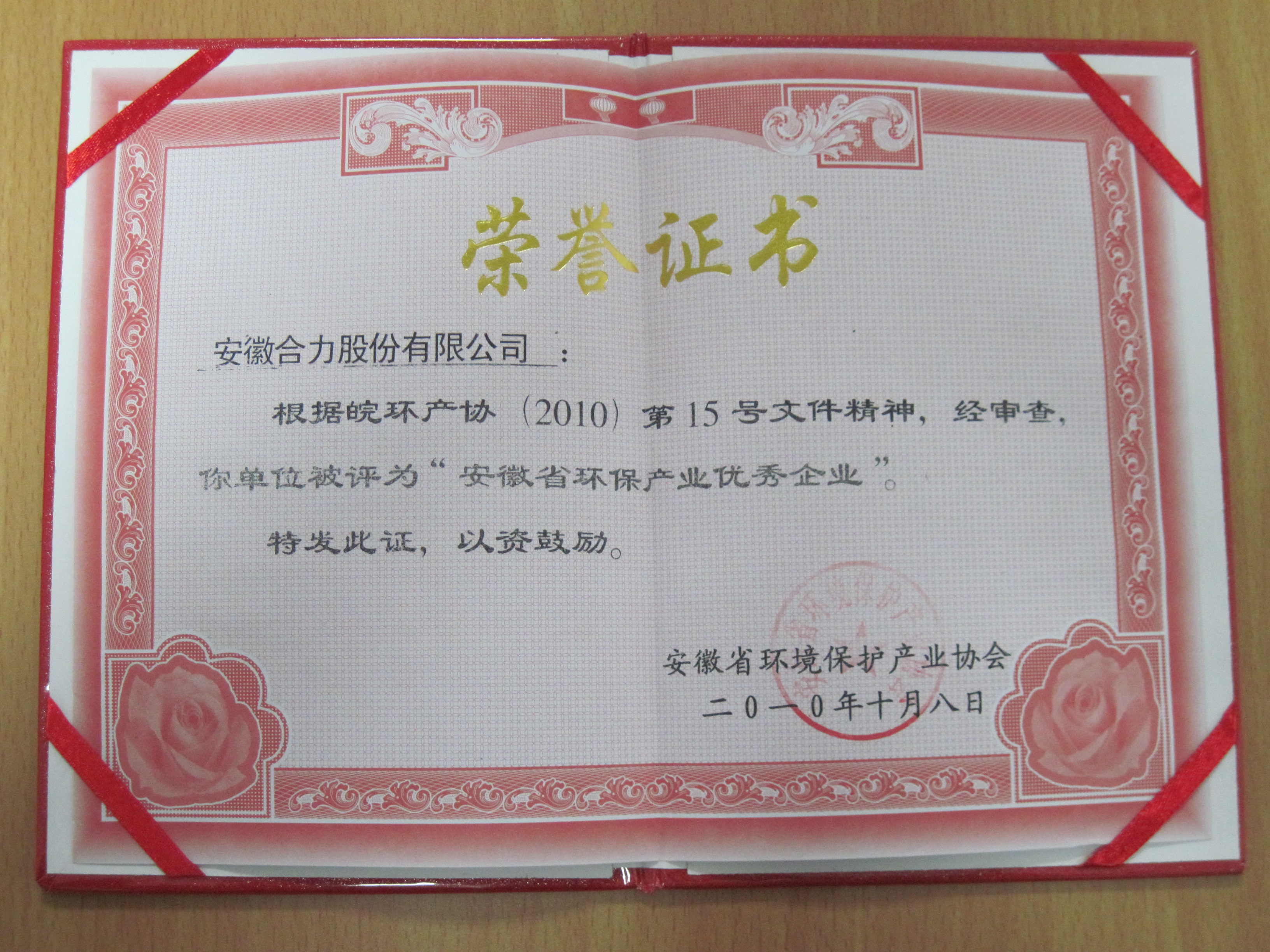 2010 安徽省环保企业优����� �������Ƴ������������ �������Ƴ�������秀企业证书