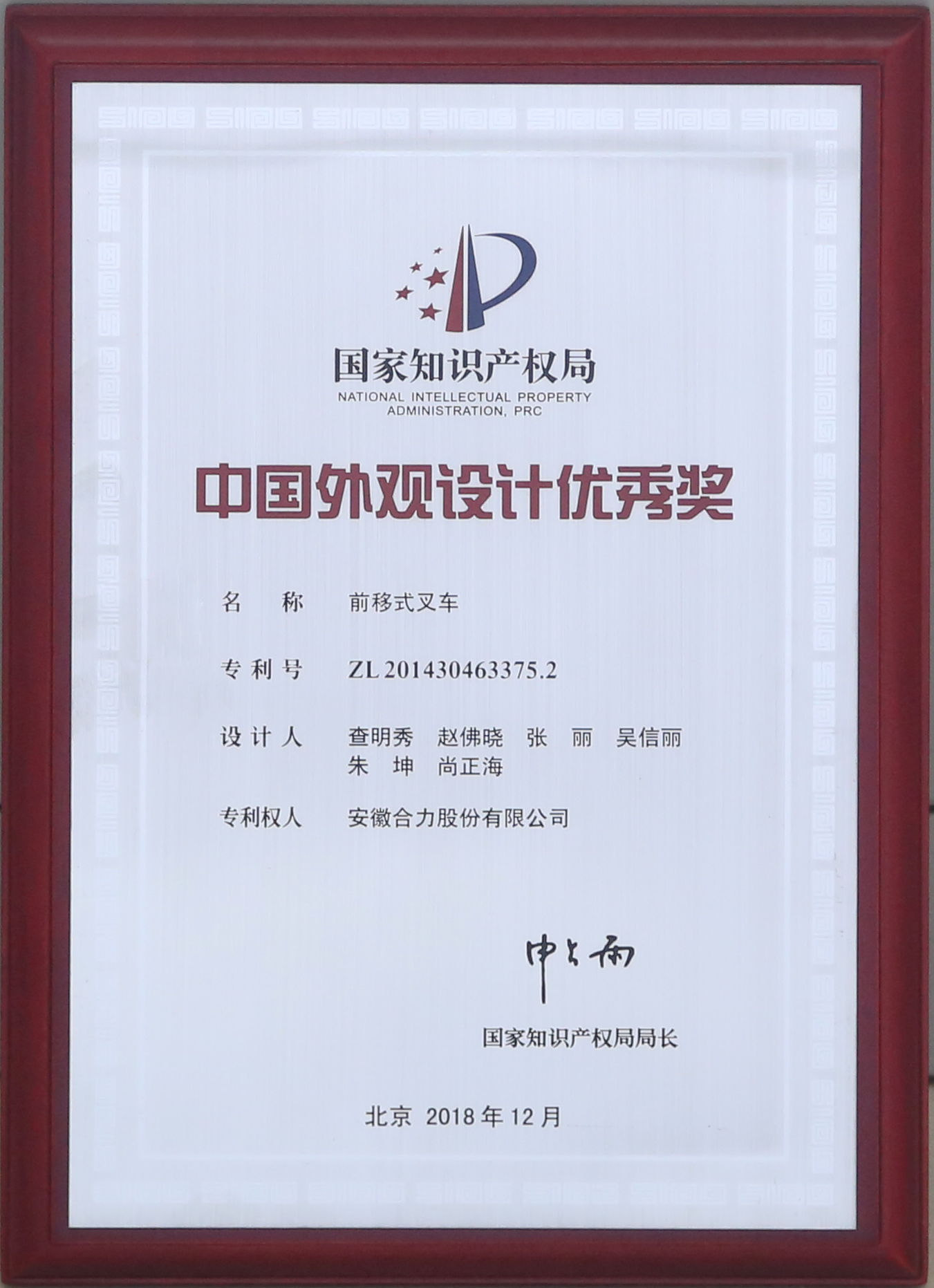 2018 第二十届外观专利优秀奖