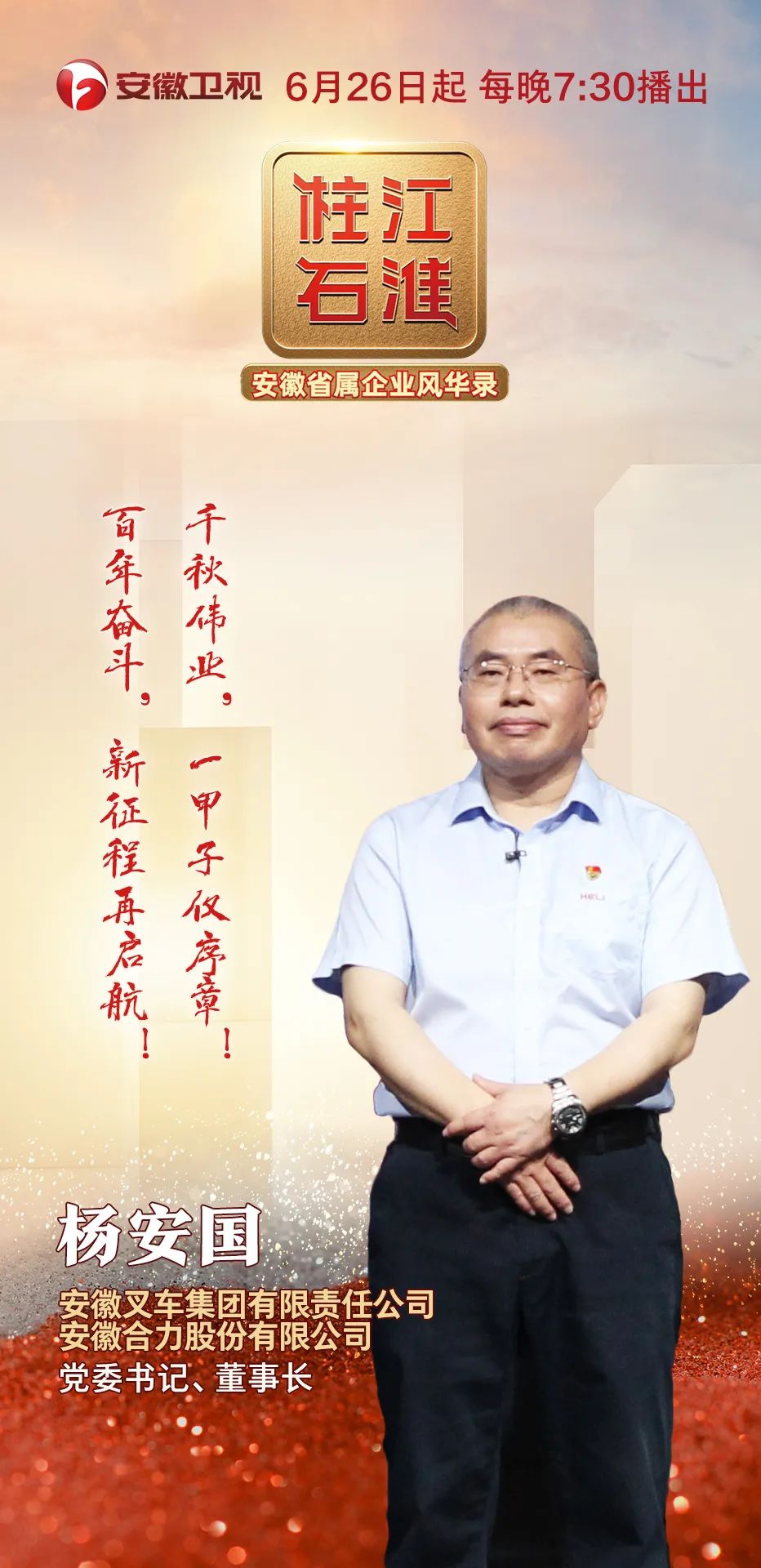 百年激荡,江淮柱石。大家好,我是����� �������Ƴ������������ �������Ƴ������������ �������Ƴ������������ �������Ƴ�������安徽叉车集团有限责任公司、安徽合力股����� �������Ƴ������������ �������Ƴ������������ �������Ƴ�������份有限公司党委书记、董事长杨安国。